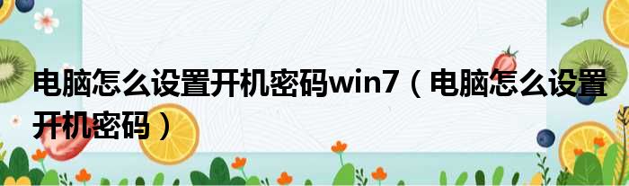 电脑怎么设置开机密码win7(电脑怎么设置开机密码)