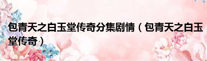 导读 大家好,今天小六子来为大家解答以下的问题,关于包青天之白玉堂传奇分集剧情,包青天之白玉堂传奇这个很多人还不知道,现在让我们一起来看