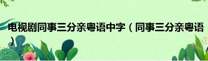 导读 大家好,今天小六子来为大家解答以下的问题,关于电视剧同事三分亲粤语中字,同事三分亲粤语这个很多人还不知道,现在让我们一起来看看吧!1