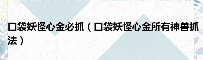 大家好,今天小六子来为大家解答以下的问题,关于口袋妖怪心金必抓,口袋妖怪心金所有神兽抓法这个很多人还不知道,现在让我们一起来看看吧!