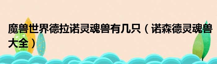 导读 大家好,今天小六子来为大家解答以下的问题,关于魔兽世界德拉诺灵魂兽有几只,诺森德灵魂兽大全这个很多人还不知道,现在让我们一起来看看