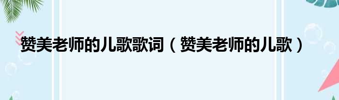 赞美老师的儿歌歌词(赞美老师的儿歌)