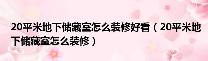 20平米地下储藏室怎么装修好看(20平米地下储藏室怎么装修)