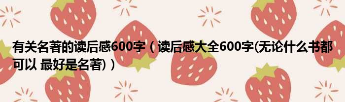 有关名著的读后感600字(读后感大全600字(无论什么书都可以 最好是名著))