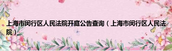 上海市闵行区人民法院开庭公告查询(上海市闵行区人民法院)