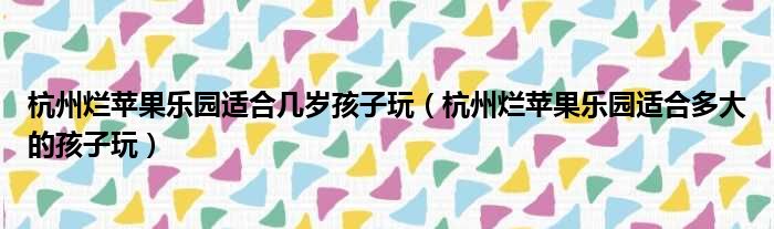 导读 大家好,今天小六子来为大家解答以下的问题,关于杭州烂苹果乐园适合几岁孩子玩,杭州烂苹果乐园适合多大的孩子玩这个很多人还不知道,现在