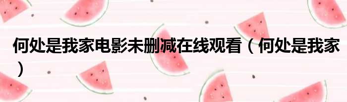导读 大家好,今天小六子来为大家解答以下的问题,关于何处是我家电影未删减在线观看,何处是我家这个很多人还不知道,现在让我们一起来看看吧!1