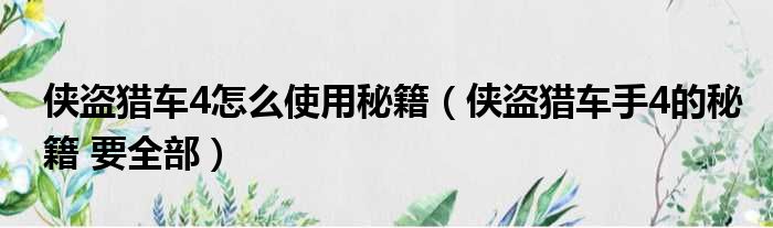 大家好,今天小六子来为大家解答以下的问题,关于侠盗猎车4怎么使用秘籍,侠盗猎车手4的秘籍 要全部这个很多人还不知道,现在让我们一起来看看吧!