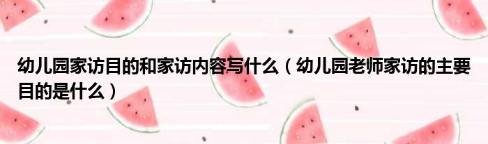幼儿园家访目的和家访内容写什么(幼儿园老师家访的主要目的是什么)