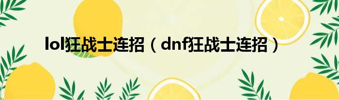 lol狂战士连招(dnf狂战士连招)