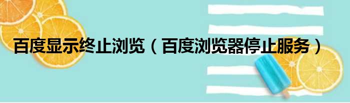 百度显示终止浏览,百度浏览器停止服务很多人还不知道,乐儿来为大家解答以上问题,现在让我们一起来看看吧!