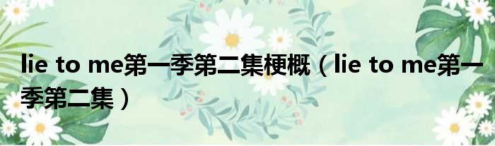 导读 大家好,今天小六子来为大家解答以下的问题,关于lie to me第一季第二集梗概,lie to me第一季第二集这个很多人还不知道,现在让我们一