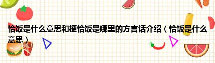 导读 大家好,今天小六子来为大家解答以下的问题,关于恰饭是什么意思和梗恰饭是哪里的方言话介绍,恰饭是什么意思这个很多人还不知道,现在让我