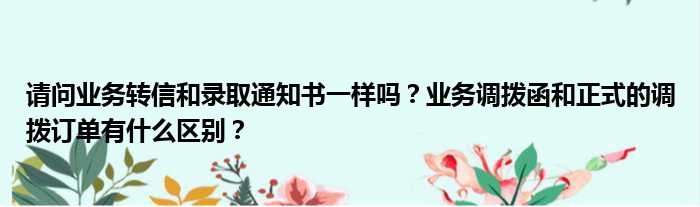 请问业务转信和录取通知书一样吗?业务调拨函和正式的调拨订单有什么区别?
