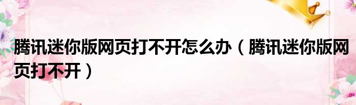 腾讯迷你版网页打不开怎么办(腾讯迷你版网页打不开)