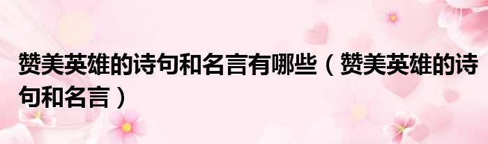赞美英雄的诗句和名言有哪些(赞美英雄的诗句和名言)
