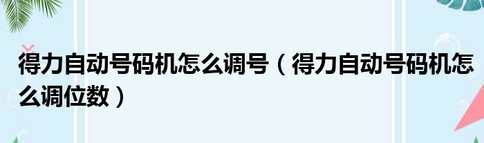 得力自动号码机怎么调号(得力自动号码机怎么调位数)