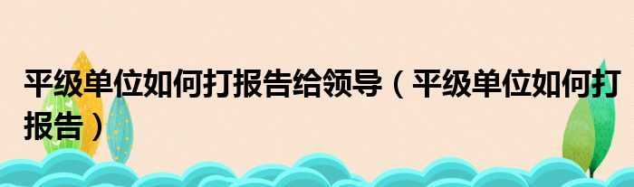 大家好,今天小六子来为大家解答以下的问题,关于平级单位如何打报告给领导,平级单位如何打报告这个很多人还不知道,现在让我们一起来看看吧!