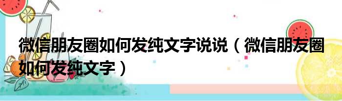 微信朋友圈如何发纯文字说说(微信朋友圈 如何发纯文字)