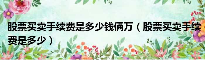 导读 大家好,今天小六子来为大家解答以下的问题,关于股票买卖手续费是多少钱俩万,股票买卖手续费是多少这个很多人还不知道,现在让我们一起来