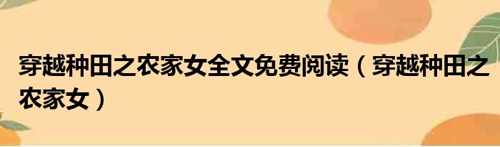 导读 大家好,今天小六子来为大家解答以下的问题,关于穿越种田之农家女全文免费阅读,穿越种田之农家女这个很多人还不知道,现在让我们一起来看