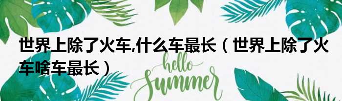 导读 大家好,今天小六子来为大家解答以下的问题,关于世界上除了火车,什么车最长,世界上除了火车啥车最长这个很多人还不知道,现在让我们一起来