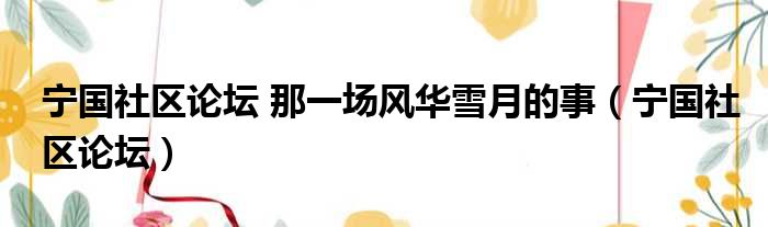 宁国社区论坛 那一场风华雪月的事(宁国社区论坛)