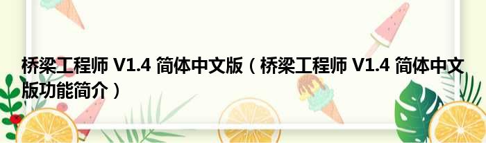 桥梁工程师 V1.4 简体中文版(桥梁工程师 V1.4 简体中文版功能简介)