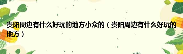 贵阳周边有什么好玩的地方小众的(贵阳周边有什么好玩的地方)