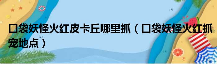 导读 大家好,今天小六子来为大家解答以下的问题,关于口袋妖怪火红皮卡丘哪里抓,口袋妖怪火红抓宠地点这个很多人还不知道,现在让我们一起来看