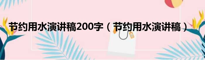 大家好,今天小六子来为大家解答以下的问题,关于节约用水演讲稿200字,节约用水演讲稿这个很多人还不知道,现在让我们一起来看看吧!
