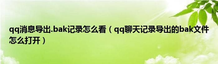 导读 大家好,今天小六子来为大家解答以下的问题,关于qq消息导出 bak记录怎么看,qq聊天记录导出的bak文件怎么打开这个很多人还不知道,现在让我