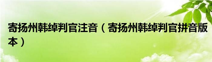 大家好,今天小六子来为大家解答以下的问题,关于寄扬州韩绰判官注音,寄扬州韩绰判官拼音版本这个很多人还不知道,现在让我们一起来看看吧!