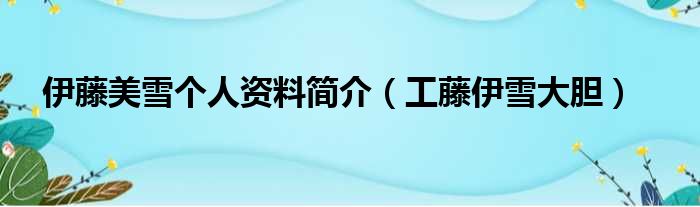 伊藤美雪个人资料简介(工藤伊雪大胆)