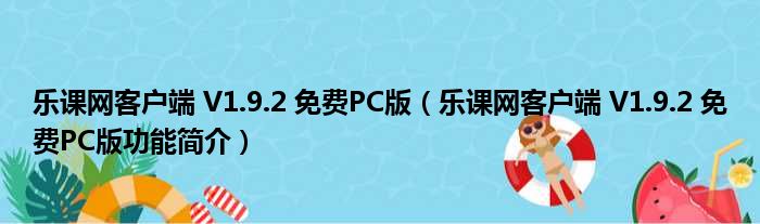 乐课网客户端 V1.9.2 免费PC版(乐课网客户端 V1.9.2 免费PC版功能简介)