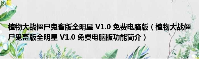 植物大战僵尸鬼畜版全明星 V1.0 免费电脑版(植物大战僵尸鬼畜版全明星 V1.0 免费电脑版功能简介)
