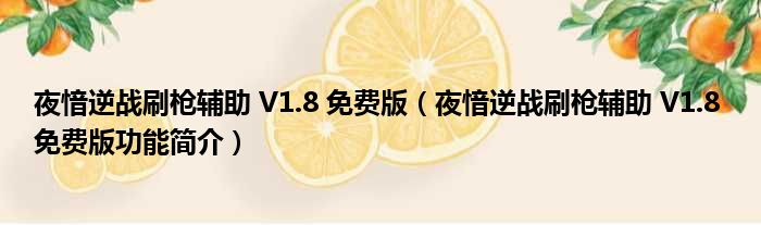 夜愔逆战刷枪辅助 V1.8 免费版(夜愔逆战刷枪辅助 V1.8 免费版功能简介)