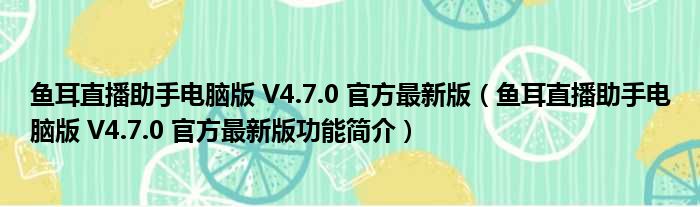 鱼耳直播助手电脑版 V4.7.0 官方最新版(鱼耳直播助手电脑版 V4.7.0 官方最新版功能简介)