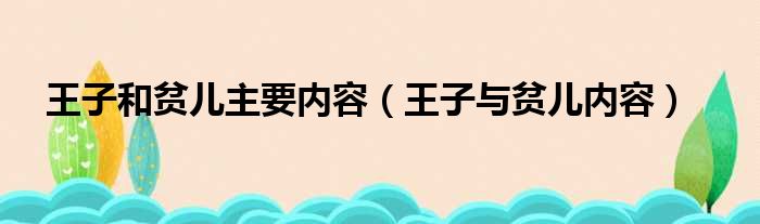大家好,今天小六子来为大家解答以下的问题,关于王子和贫儿主要内容,王子与贫儿内容这个很多人还不知道,现在让我们一起来看看吧!