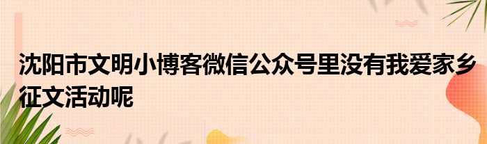 导读 大家好,今天小六子来为大家解答以下的问题,关于沈阳市文明小博客微信公众号里没有我爱家乡征文活动呢这个很多人还不知道,现在让我们一起