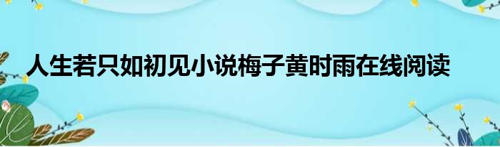大家好,今天小六子来为大家解答以下的问题,关于人生若只如初见小说梅子黄时雨在线阅读这个很多人还不知道,现在让我们一起来看看吧!