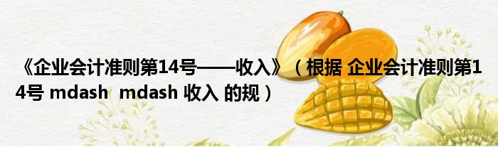 导读 大家好,今天小六子来为大家解答以下的问题,关于《企业会计准则第14号——收入》,根据 企业会计准则第14号 mdash mdash 收入 的规