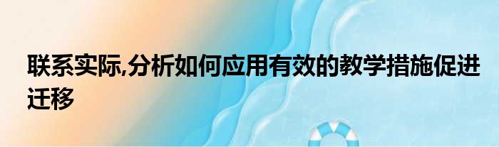 导读 大家好,今天小六子来为大家解答以下的问题,关于联系实际,分析如何应用有效的教学措施促进迁移这个很多人还不知道,现在让我们一起来看看吧