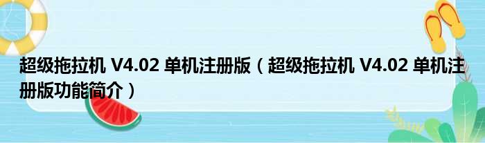 导读 大家好,关于超级拖拉机 V4 02 单机注册版,超级拖拉机 V4 02 单机注册版功能简介这个很多人还不知道,小勒来为大家解答以上的问题,现在