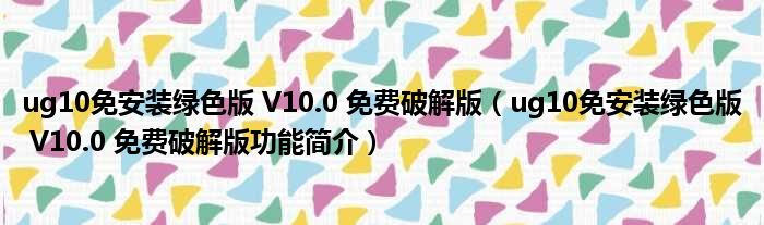 ug10免安装绿色版 V10.0 免费破解版(ug10免安装绿色版 V10.0 免费破解版功能简介)