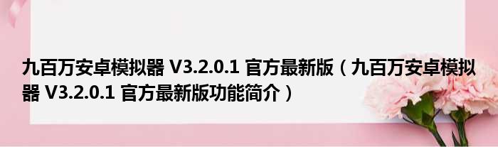 九百万安卓模拟器 V3.2.0.1 官方最新版(九百万安卓模拟器 V3.2.0.1 官方最新版功能简介)