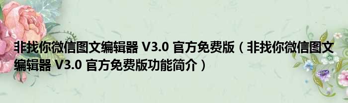 导读 大家好,关于非找你微信图文编辑器 V3 0 官方免费版,非找你微信图文编辑器 V3 0 官方免费版功能简介这个很多人还不知道,小勒来为大家解