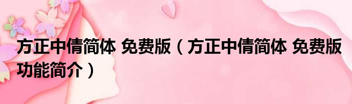 方正中倩简体 免费版(方正中倩简体 免费版功能简介)
