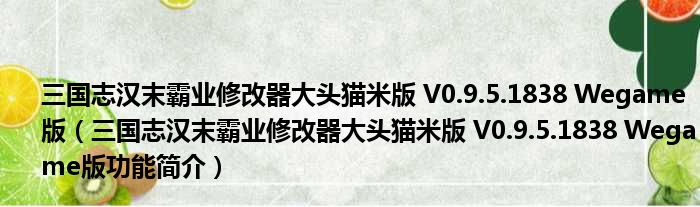 三国志汉末霸业修改器大头猫米版 V0.9.5.1838 Wegame版(三国志汉末霸业修改器大头猫米版 V0.9.5.1838 Wegame版功能简介)