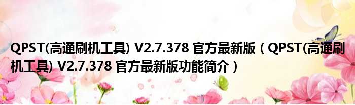 QPST(高通刷机工具) V2.7.378 官方最新版(QPST(高通刷机工具) V2.7.378 官方最新版功能简介)